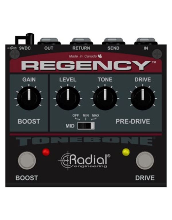 Το Regency είναι ένα true-bypass πετάλι διπλής λειτουργίας που διαθέτει ένα κύκλωμα ήπιου overdrive και έναν Class-A booster με ενσωματωμένο effect loop.