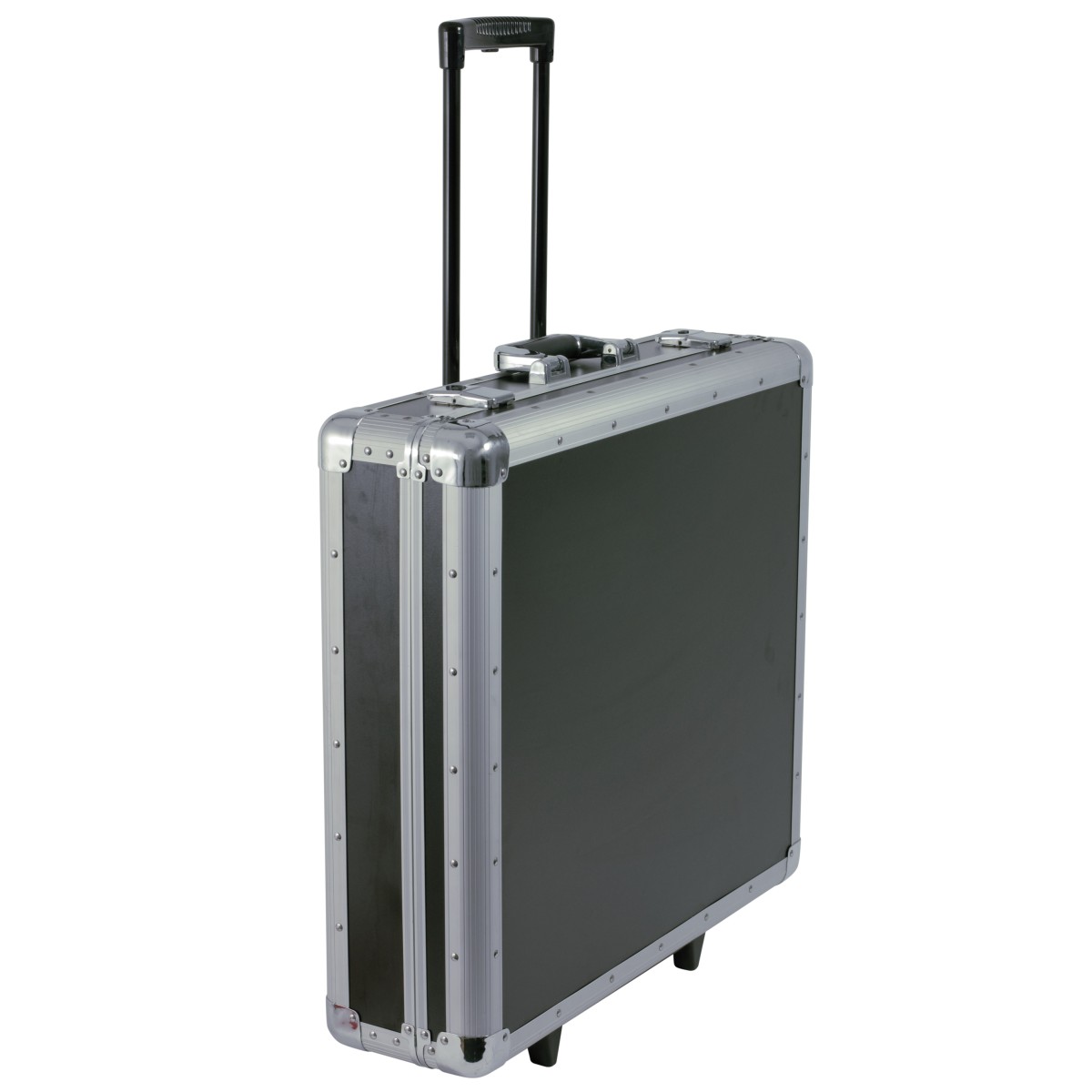 Ιδιαίτερα στιβαρή κατασκευή από ξύλο επενδυμένο με αλουμίνιο Εσωτερικός διαχωρισμός σε 4 μέρη Δύο αυτόματες κλειδαριές Στρογγυλές γωνίεςΔιαστάσεις: 613 x 170 x 559 mm Βάρος: 6.6 kg Χωράει περίπου 200 CDs