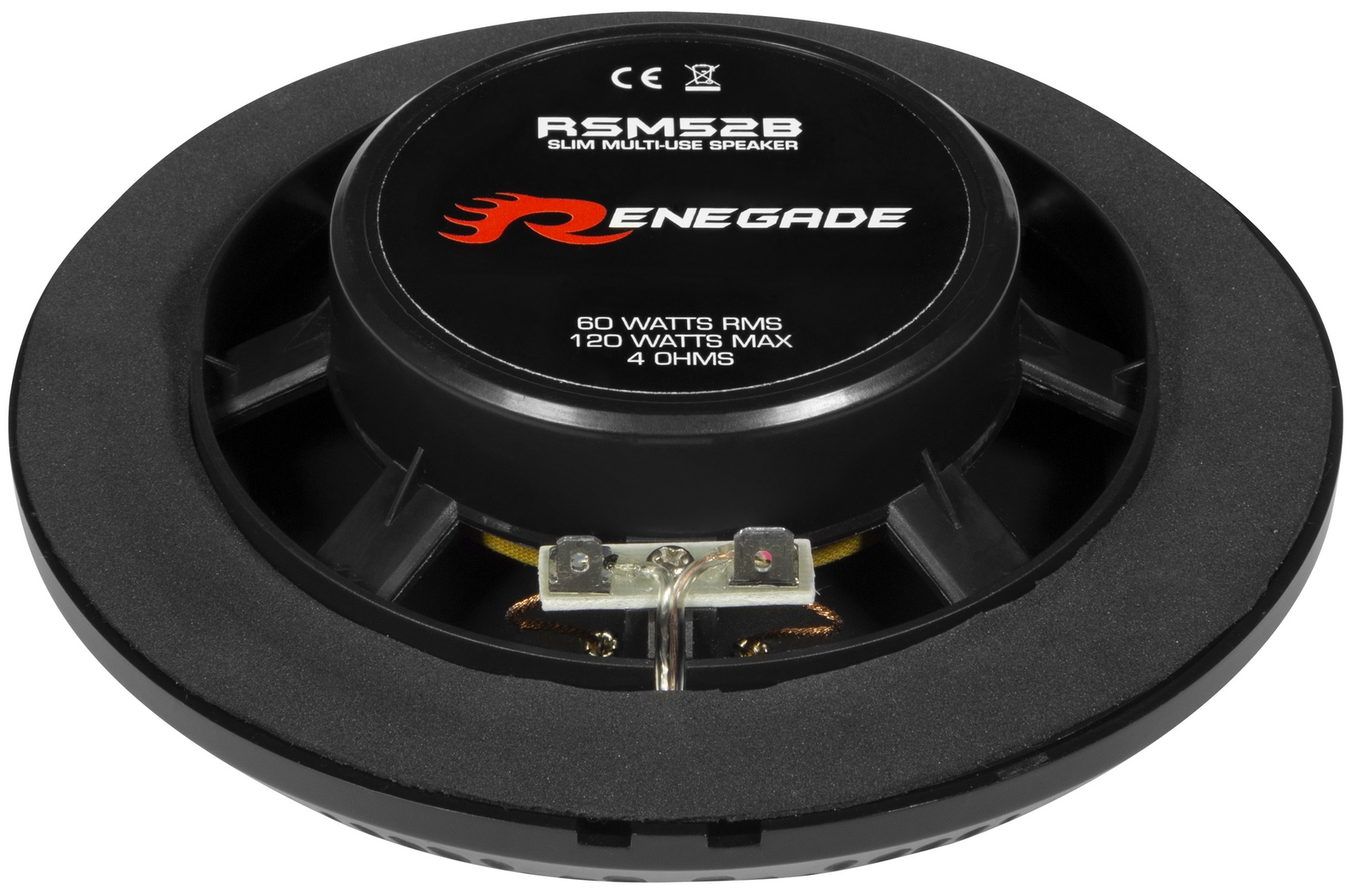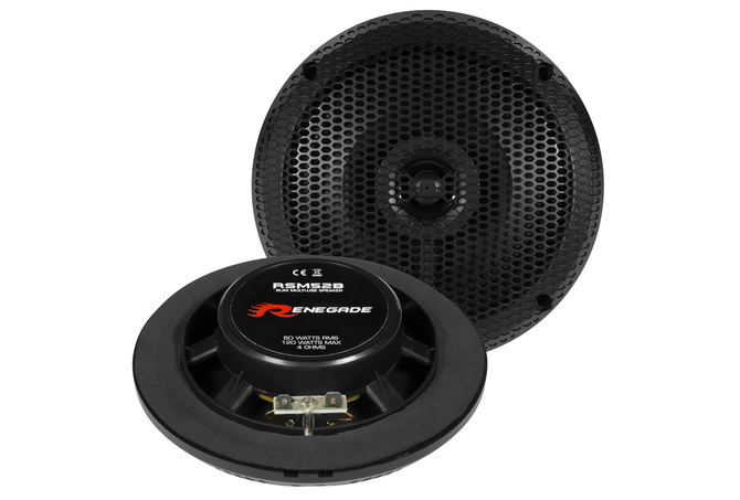 13 cm (5.2.5″) 2-Way Ceiling or Wall Coaxial Speakers for Bathroom / Marine / Outdoor Features:60 Watts RMS, 120 Watts MAX. Impedance 4 Ohm Splash-proof, UV-resistant ABS basket with cover grille in white Polypropylene Cone 2 x 130 mm Coaxial with 26 mm Mylar Tweeter Mounting Depth 25 mm Mounting Hole 110 mm