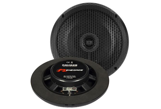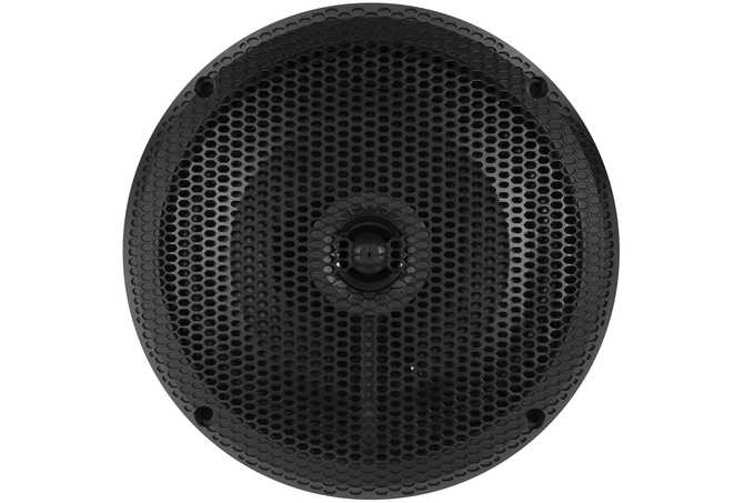 16,5 cm (6.5″) 2-Way Ceiling or Wall Coaxial Speakers for Bathroom / Marine / Outdoor Features:80 Watts RMS, 160 Watts MAX. Impedance 4 Ohm Splash-proof, UV-resistant ABS basket with cover grille in white Polypropylene Cone 2 x 165 mm Coaxial with 26 mm Mylar Tweeter Mounting Depth 25 mm Mounting Hole125 mm
