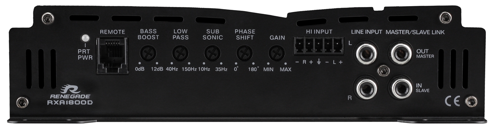 Specifications 1 x 400 Watts RMS @ 4 Ohms 1 x 600 Watts RMS @ 2 Ohms 1 x 900 Watts RMS @ 1 Ohms 1 x 800 Watts Max. @ 4 Ohms 1 x 1200 Watts Max. @ 2 Ohms 1 x 1800 Watts Max. @ 1 Ohm 220 x 48 x 260/290 mm Features MOSFET Power Supply RCA In- and Outputs High Level Inputs 1 Ohm Stability Low Pass Filter 40 – 150 Hz Subsonic Filter 10 – 35 Hz Bass Boost 0 – 12 dB Phase Shift 0 – 180° Master/Slave Function Bass Level Remote Controller