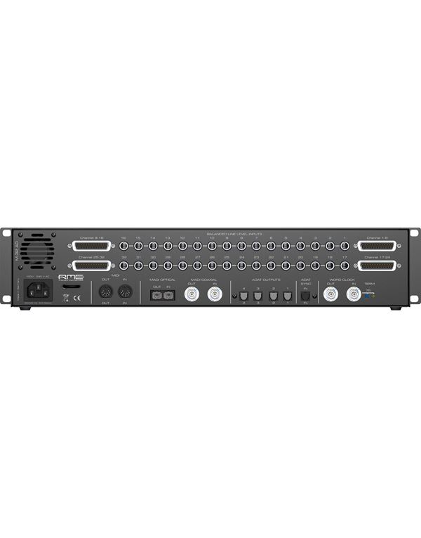 Μετατροπέας AD 32 καναλιών αναφοράς, υψηλής ανάλυσης 24bit/192kHz, με 4 εισόδους D-SUB 25pin και εναλλακτικά 32 balanced TRS, ψηφιακή σύνδεση MADI optical SC και coaxial BNC, 4 ψηφιακές εξόδους optical ADAT ( μέχρι 96kHz), Wordclock είσοδο και έξοδο BNC, Midi είσοδο και έξοδο, ψηφιακή είσοδο ADAT optical για συγχρονισμό. Αναλογικό Limiter στις εισόδους, γέφυρα οργάνων εισόδων με ένδειξη στάθμης.