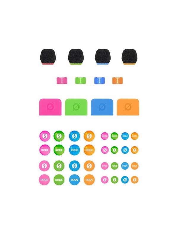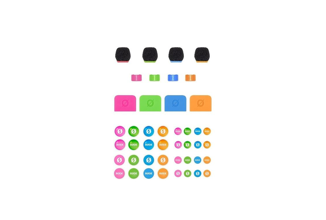 Χρήσιμο όταν χρησιμοποιούνται πολλά μικρόφωνα στον ίδιο χώρο , το COLORS 3 είναι ένα σετ με τέσσερα χρωματιστά αντιανέμια, δακτυλίους αναγνώρισης καλωδίων, ετικέτες και αυτοκόλλητα για τα RODE Wireless GO, Wireless GO II, Wireless PRO, Wireless GO (Gen 3) και Lavalier II, που διευκολύνει την αναγνώριση