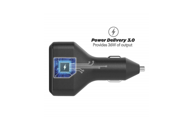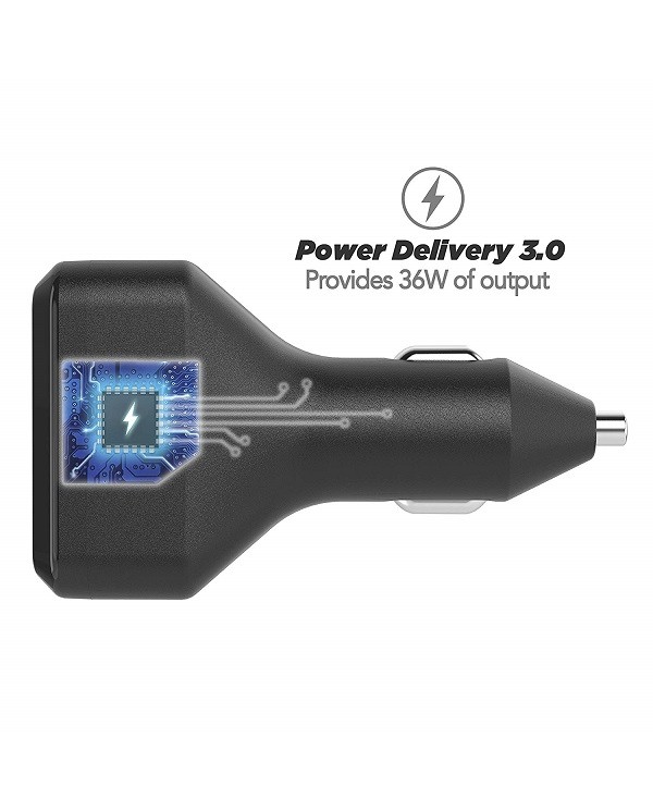 Το Scosche StrikeDrive 3.0 USB-C Fast Charger είναι ένας γρήγορος και συμπαγής φορτιστής αυτοκινήτων με δύο θύρες που προσφέρει συνολική ισχύ των 36W. Διαθέτει τεχνολογία Power Delivery 3.0 που προσφέρει έως και 3 φορές μεγαλύτερη ταχύτητα από συμβατικούς USB φορτιστές αυτοκινήτου. Η μπλε ενδεικτική λυχνία LED σας ενημερώνει ότι ο φορτιστής λαμβάνει ενέργεια και είναι έτοιμος για τη φόρτιση συσκευών.Οι θύρες USB-C 18W μπορούν να φορτίσουν τα τελευταία smartphones της Apple και της Samsung με έως και τρεις φορές την ισχύ ενός απλού φορτιστή USB. Το βελτιστοποιημένο κύκλωμα φόρτισης είναι επίσης απόλυτα ασφαλές για συσκευές που απαιτούν λιγότερη ενέργεια.Χαρακτηριστικά