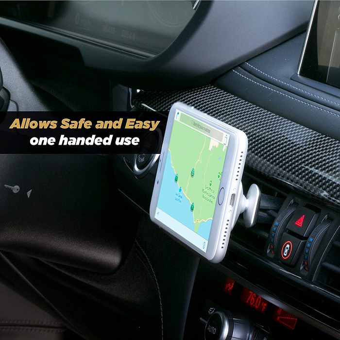 Μπορείτε εύκολα να έχετε το smartphone σας σε όποια γωνία κλίσης επιθυμείτε. Είτε βρίσκεται στο ταμπλό του αυτοκινήτου σας, είτε στο γραφείο της εργασίας σας, είτε στο κομοδίνο σας μπορείτε να βρείτε την ιδανική θέση θέασης. Ισχυροί μαγνήτες rare-earth συγκρατούν την συσκευή σας με ασφάλεια στη θέση της ακόμη και στις πιο δύσκολες διαδρομές.* Δεν είναι συμβατοί με το iPod Classic και άλλες συσκευές με σκληρό δίσκο. Τα ισχυρά μαγνητικά πεδία που παράγονται από τους μαγνήτες νεοδυμίου είναι ικανά να προκαλέσουν βλάβες στις συσκευές με σκληρό δίσκο.Συγκρατεί με ασφάλεια τη συσκευή σας στη σχάρα εξαερισμού του αυτοκινήτου σας και χάρη στον μοντέρνο και κομψό σχεδιασμό της, ταιριάζει απόλυτα σε κάθε σαλόνι αυτοκινήτου. Εργονoμική σχεδίαση που επιτρέπει την τοποθέτηση και την αφαίρεση της συσκευής με το ένα χέρι. Χρησιμοποιήστε την συσκευή σας καθέτως, οριζοντίως ή σε όποια ενδιάμεση γωνία επιθυμείτε.