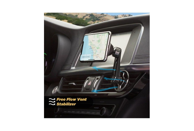 Η πολυβραβευμένη μαγνητική βάση MagicMount της Scosche αποτελεί την απλούστερη και σταθερότερη βάση στήριξης για κινητά, tablet, κ.α. Απλά τοποθετείστε την συσκευή σας πάνω στην μαγνητική βάση και αυτή θα κλειδώσει με ασφάλεια στην θέση της. Είναι καλαίσθητη ενώ ρυθμίζεται πανεύκολα. Διαθέτει ισχυρούς μαγνήτες νεοδυμίου για σταθερή συγκράτηση της συσκευής κάθετα ή οριζόντια για βέλτιστη γωνία θέασης! Τοποθετήστε την βάση MagicMount Pro Freeflow Vent στους αεραγωγούς του αυτοκινήτου σας.Δυνατοί τρόποι τοποθέτησης του MagicPlateΤο μαγνητικό σύστημα MagicMount χρησιμοποιεί ισχυρούς μαγνήτες για ασφαλή συγκράτηση της MagicPlate η οποία είναι μία μικρή μεταλλική πλάκα που τοποθετείται εύκολα στο πίσω μέρος της συσκευής σας. Μπορείτε με την κολλητική ταινία που διαθέτει να την τοποθετήσετε:εξωτερικά στο πίσω μέρος της συσκευής σαςεσωτερικά πίσω από το κάλυμμα της μπαταρίαςανάμεσα στην προστατευτική θήκη και το κινητόπάνω στην προστατευτική θήκηΧαρακτηριστικά:Universal βάση στήριξης κατάλληλη για χρήση με smartphones και συσκευές GPSΔεν χρησιμοποιεί βεντούζες, κόλλες και εντεινόμενα πλαϊνάΑσφαλής στήριξη του Magic Mount με ισχυρή ταινία διπλής όψης 3M που αποκολλάται χωρίς να αφήνει υπολείμματαΤοποθετήστε τη συσκευή σας σε οποιαδήποτε γωνία επιθυμείτε εσείς.