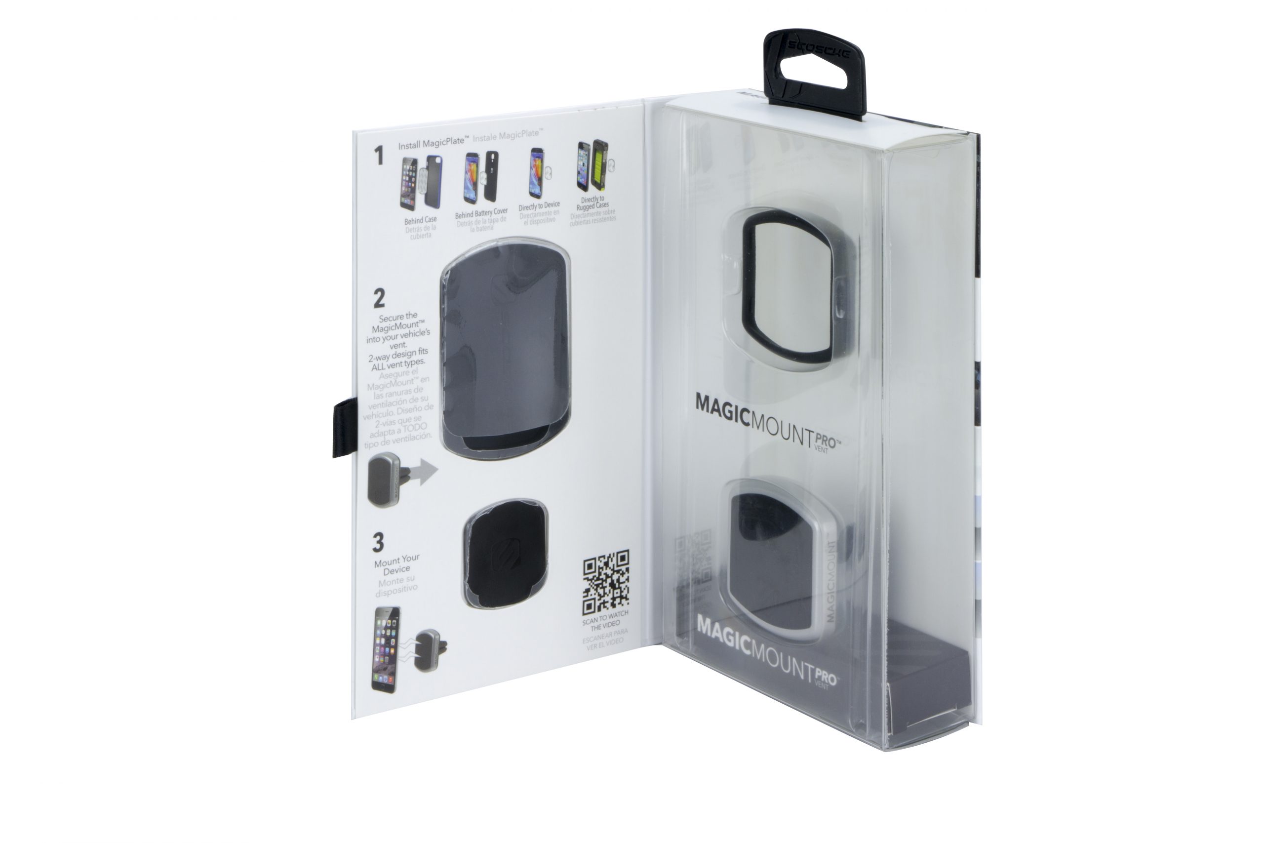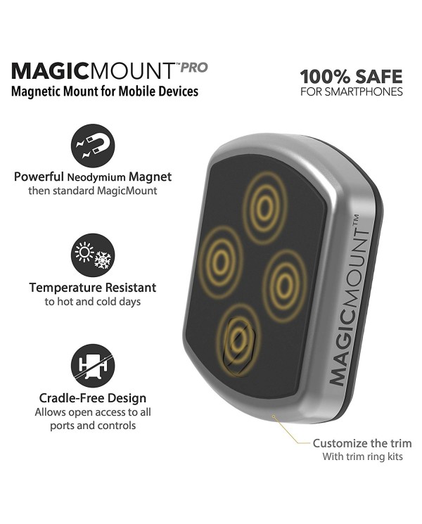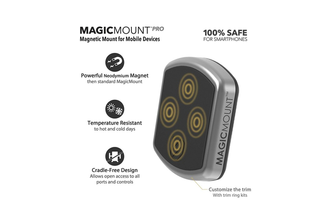 Η πολυβραβευμένη μαγνητική βάση MagicMount Pro της Scosche αποτελεί την απλούστερη και σταθερότερη βάση στήριξης για κινητά, tablet, κ.α. Απλά τοποθετήστε την συσκευή σας πάνω στην μαγνητική βάση και αυτή θα κλειδώσει με ασφάλεια στην θέση της. Είναι καλαίσθητη ενώ ρυθμίζεται πανεύκολα. Διαθέτει ισχυρούς μαγνήτες νεοδυμίου για σταθερή συγκράτηση της συσκευής κάθετα ή οριζόντια για βέλτιστη γωνία θέασης!ΤοποθέτησηΤοποθετήστε την βάση MagicMount Pro Vent στους αεραγωγούς του αυτοκινήτου σας.Δυνατοί τρόποι τοποθέτησης του MagicPlateΤο μαγνητικό σύστημα MagicMount Pro χρησιμοποιεί ισχυρούς μαγνήτες για ασφαλή συγκράτηση της MagicPlate η οποία είναι μία μικρή μεταλλική πλάκα που εύκολα τοποθετείται στο πίσω μέρος της συσκευής σας. Μπορείτε με την κολλητική ταινία που διαθέτει να την τοποθετήσετε: