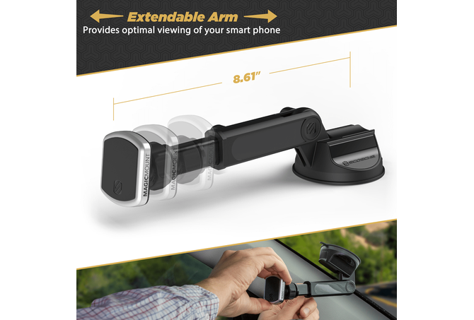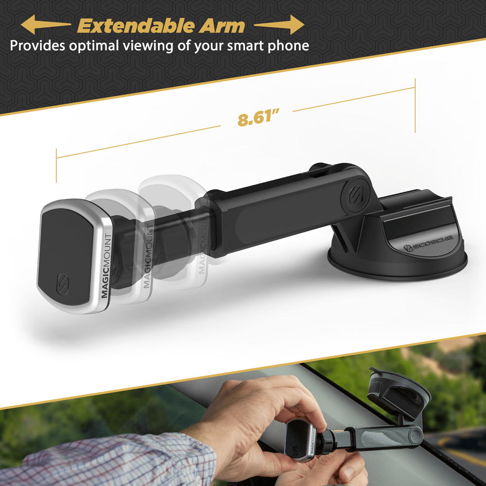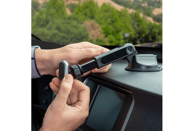 Extendo Telescoping ArmΚάθε όχημα και κάθε οδηγός είναι διαφορετικοί και το Extendo προσαρμόζεται ώστε να ταιριάζει απόλυτα σε κάθε ένα. Απλώς συνδέστε τη βάση στο παρμπρίζ, το ταμπλό ή το γραφείο σας και επεκτείνετε / συρρικνώστε το μήκος του βραχίονα, ρυθμίστε τη γωνία και, στη συνέχεια, κλειδώστε τη στη θέση όταν βρείτε την τέλεια γωνία θέασης.