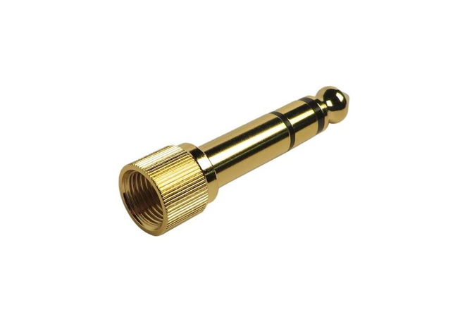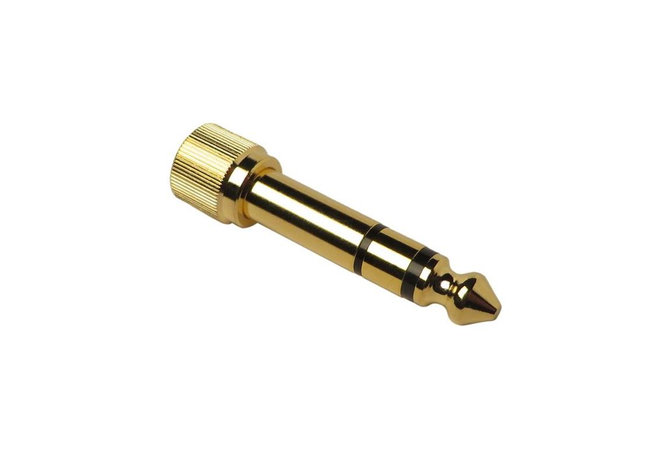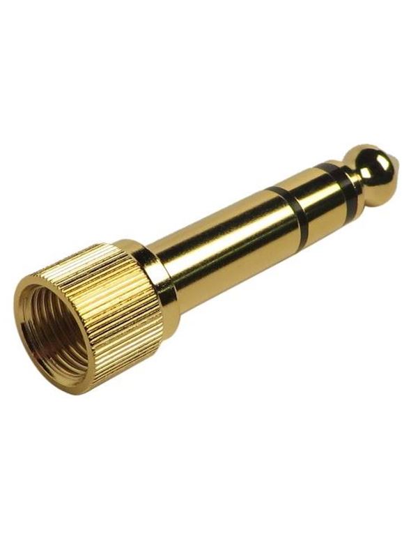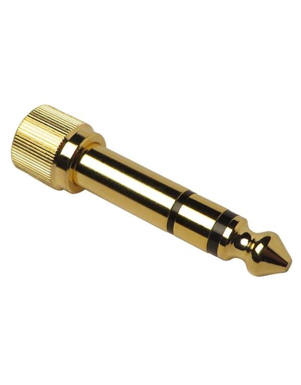 Adaptor jack 3.5 stereo θηλυκό – jack 6.3 stereo αρσενικό με σπείρωμα. Κατάλληλο για όλα τα ακουστικά με μικρό καρφί με σπείρωμα ασφαλείας.
