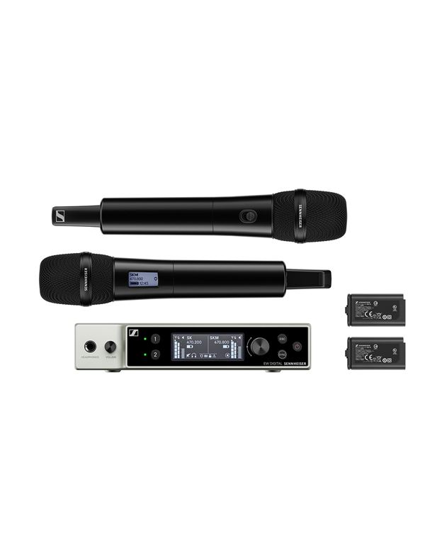 Αυτό το σετ αποτελείται από 2 x EW-DX SKM-S (χειρός με διακόπτη mute), 2 x MMD 835 κάψουλα (cardioid, dynamic), 1 x EW-DX EM 2 δέκτη rackmout (2 κανάλια) και 2 x BA 70 επαναφορτιζόμενες μπαταρίες .