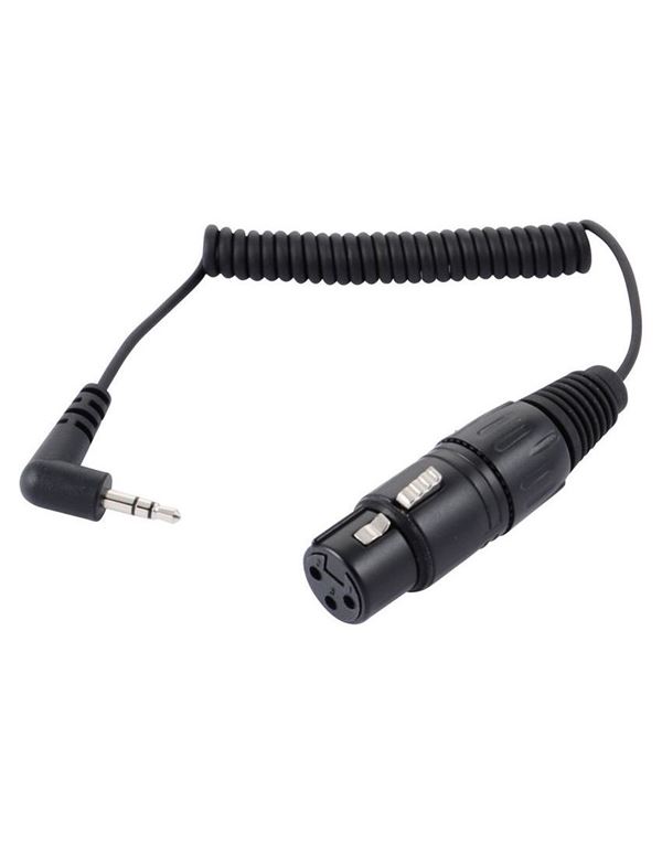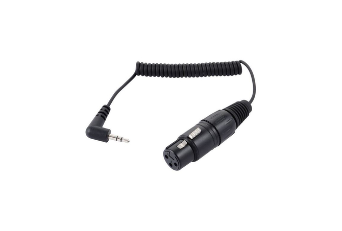 Καλώδιο σπιράλ μικρό στέρεο γωνιακό καρφί χωρίς βιδωτή ασφάλεια σε θηλυκό XLR3. Για τη σύνδεση μικροφώνων με έξοδο XLR σε κάμερες χωρίς XLR.