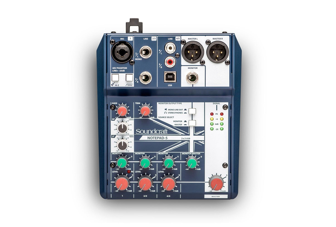 Κονσόλα μίξης 1 mono/line, 2 stereo line, περιστροφικά ποτενσιόμετρα σε κάθε κανάλι, ΕQ 2 περιοχών, 1 Aux send, High Pass filter και Hi-Z σε όλα τα mono inputs με gain ή tim αναλόγως το είδος της εισόδου. Balanced XLR εξόδους και έξοδο monitor ή ακουστικά. Περιλαμβάνει και μια στερεοφωνική είσοδο/έξοδο σε βύσμα USB.