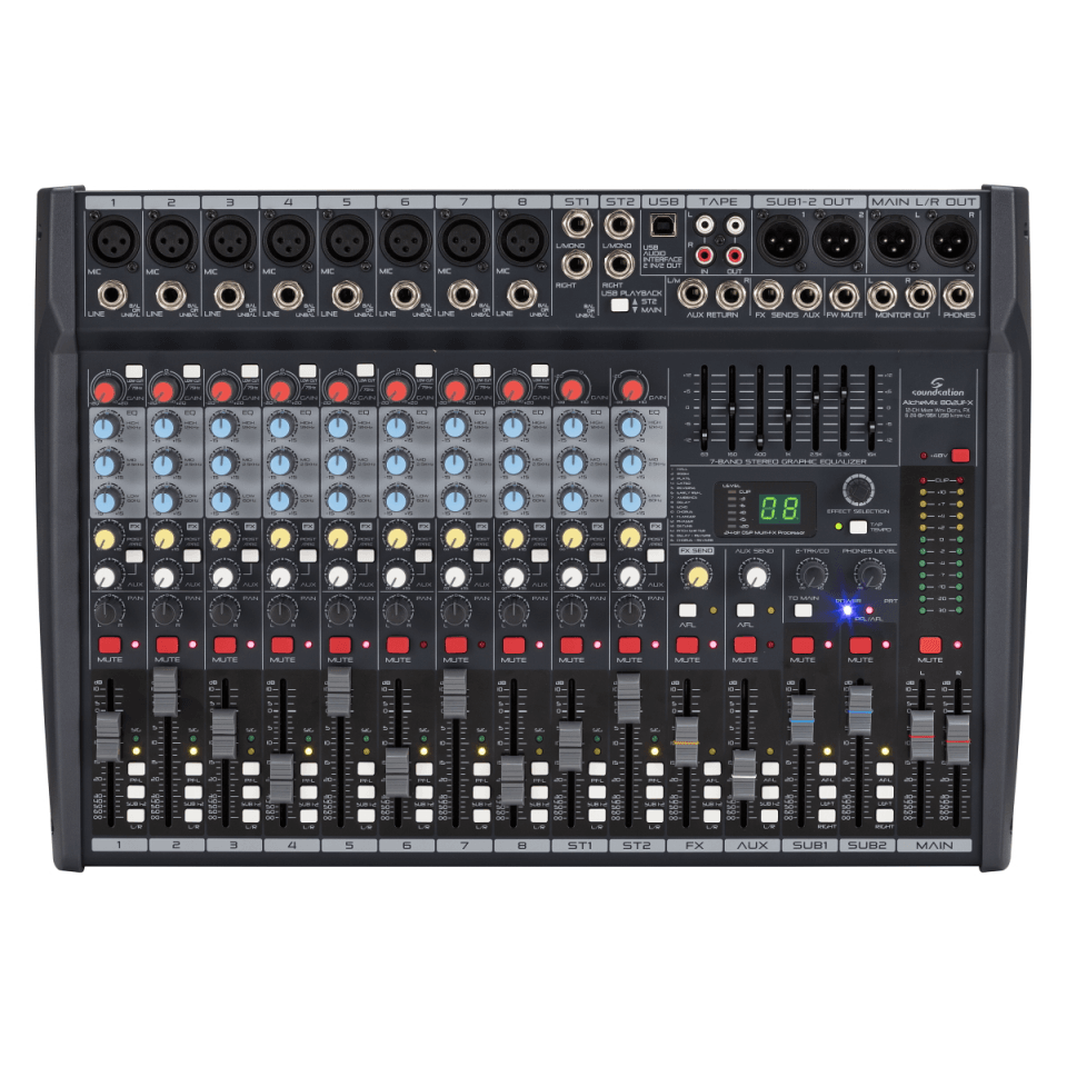 Ο SOUNDSATION ALCHEMIX 802UFX είναι ένας επαγγελματικός αναλογικός μίκτης 12 καναλιών υψηλής ποιότητας, εξοπλισμένος με ψηφιακά εφέ 24-bit και ενσωματωμένη USB κάρτα ήχου stereo In/Out. Σχεδιάστηκε για να καλύψει τις ανάγκες μουσικών και επαγγελματιών του χώρου της ψυχαγωγίας, προσφέροντας αξιοπιστία και ευελιξία σε live εμφανίσεις, στούντιο, αίθουσες προβών, σχολεία και home recording.