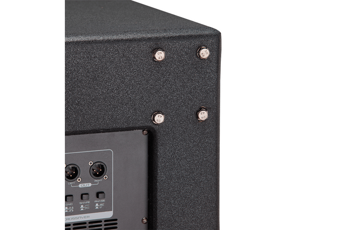 Η σχεδίαση του περιλαμβάνει υποδοχή M20 για βάση δορυφορικού ηχείου, ενσωματωμένες χειρολαβές για εύκολη μεταφορά, καθώς και δυνατότητα τοποθέτησης τροχών (σε εκδόσεις 15” και 18”) για ακόμα μεγαλύτερη ευκολία στις μετακινήσεις.