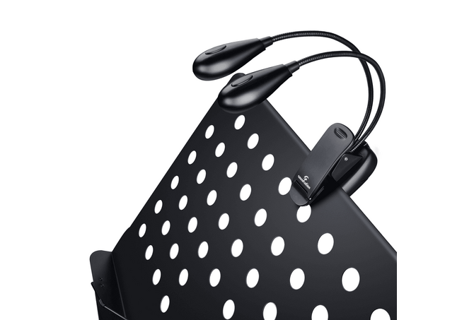 Το SOUNDSATION MSL4 είναι ένα ρυθμιζόμενο διπλό φωτιστικό για αναλόγιο με εύκαμπτους βραχίονες, εξοπλισμένο με σφιγκτήρα για εύκολη και ασφαλή στερέωση. Τα δύο λαμπάκια με 2 LED το καθένα προσφέρουν άριστο φωτισμό σε κάθε συνθήκη, ιδανικό για άνετη ανάγνωση της μουσικής. Λειτουργεί με μπαταρίες ή μέσω καλωδίου USB.