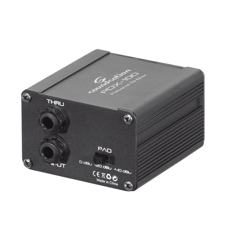Το Soundsation PDX-100 είναι ένα παθητικό DI Box, σχεδιασμένο για τη μετατροπή σημάτων υψηλής αντίστασης (Hi-Z) από όργανα ή line outputs σε χαμηλής αντίστασης (Lo-Z) ισορροπημένο σήμα, κατάλληλο για απευθείας σύνδεση σε κονσόλες μίξης ή ενισχυτές.