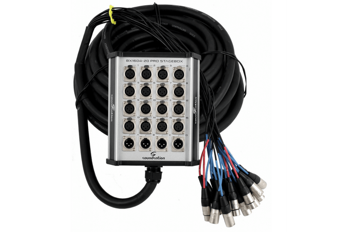Το SOUNDSATION SGBX20 160430 είναι ένα επαγγελματικό stage box σχεδιασμένο για απαιτητικές εφαρμογές σε ζωντανές εμφανίσεις και στούντιο. Διαθέτει 16 θηλυκές υποδοχές 3-pin XLR για εισόδους και 4 αρσενικές υποδοχές 3-pin XLR για εξόδους, προσφέροντας αξιόπιστη σύνδεση και υψηλή ποιότητα σήματος.