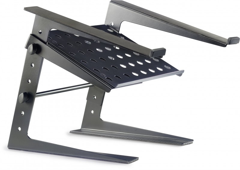Ατσάλινη επιτραπέζια βάση για notebook, usb controller, CD player, κ.α. με ρυθμιζόμενο ύψος και πρόσθετο ράφι. Το ύψος της βάσης ρυθμίζεται σε 5 διαφορετικές θέσεις ανά 3 εκατοστά, ελάχιστο ύψος 23 εκ. και μέγιστο 35 εκ. Η βάση έχει αντιολισθητικές επιφάνεις και ειδική μαύρη βαφή που την προστατεύει από τις εκδορές.