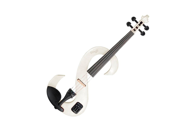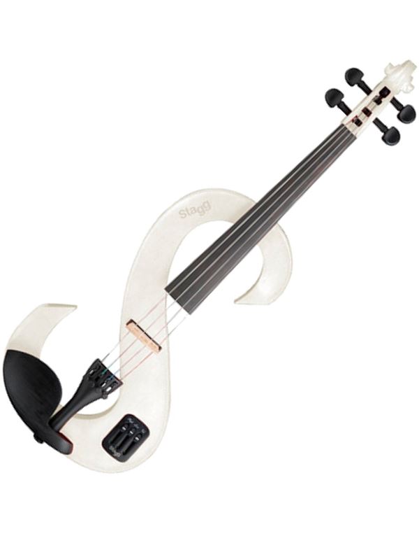 STAGG EVN 4/4 WH, Hλεκτρικό βιολί συνοδευόμενο από βαλίτσα, δοξάρι, ρετσίνι και ακουστικά. Πιο συγκεκριμένα το βιολί διαθέτει ΕQ τριών περιοχών, ρυθμιστικά έντασης προενισχυτή ακουστικών με 3,5mm output jack.