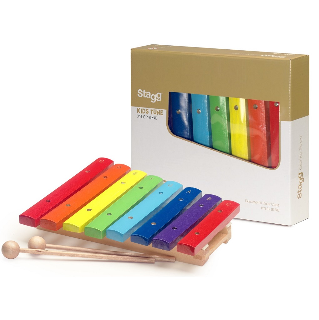 Ξυλόφωνο διατονικό μιας οκτάβας, Stagg XYLO-J8 RB με 8 χρωματιστές μπάρες.