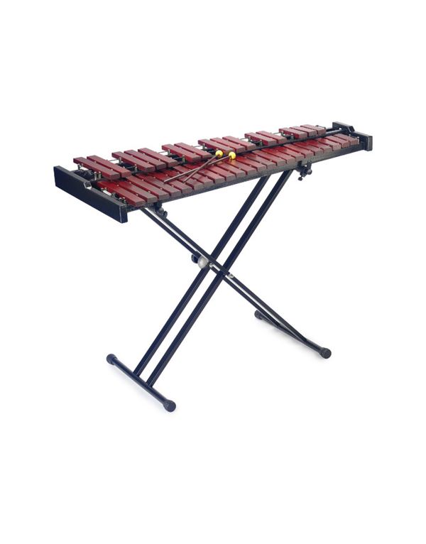 Επαγγελματικού τύπου ξυλόφωνο τριών (3) οκτάβων, χόρδισμα A=442 Hz, σύστημα ανάρτησης, ξύλινο πλαίσιο με πλάτη αντήχησης, μπάρες κατασκευασμένες από παλίσανδρο, μήκος μπάρας 110 - 290 χιλ., πλάτος 38 χιλ, πάχος 18 χιλ. παρέχονται επαγγελματικές μπαγκέτες και διπλή βάση χιαστί σχεδιασμού με ρυθμιζόμενο ύψος, θήκη με επένδυση και χειρολαβές καθώς και ιμάντες πλάτης. Διαστάσεςι 45.28 x 21.26 - 115 x 54 / 23 εκατοστά