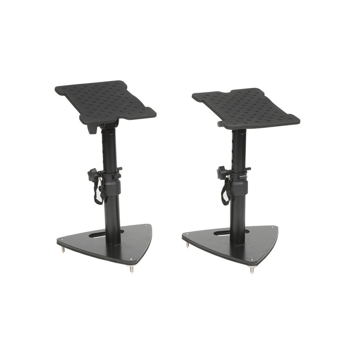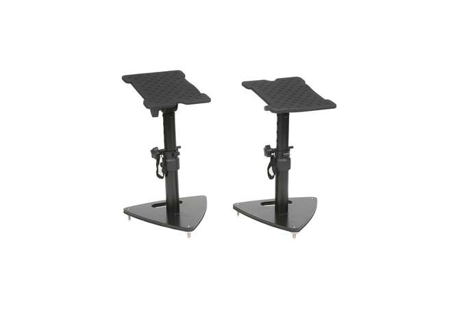 Επιτραπέζια βάση για studio monitors κατασκευασμένη από χάλυβα, με ρύθμιση ύψους ως 37,5 εκατοστά και με δυνατότητα περιστροφής και κλίσης της επιφάνειας στήριξης του monitor. Πωλούνται ως ζεύγος.