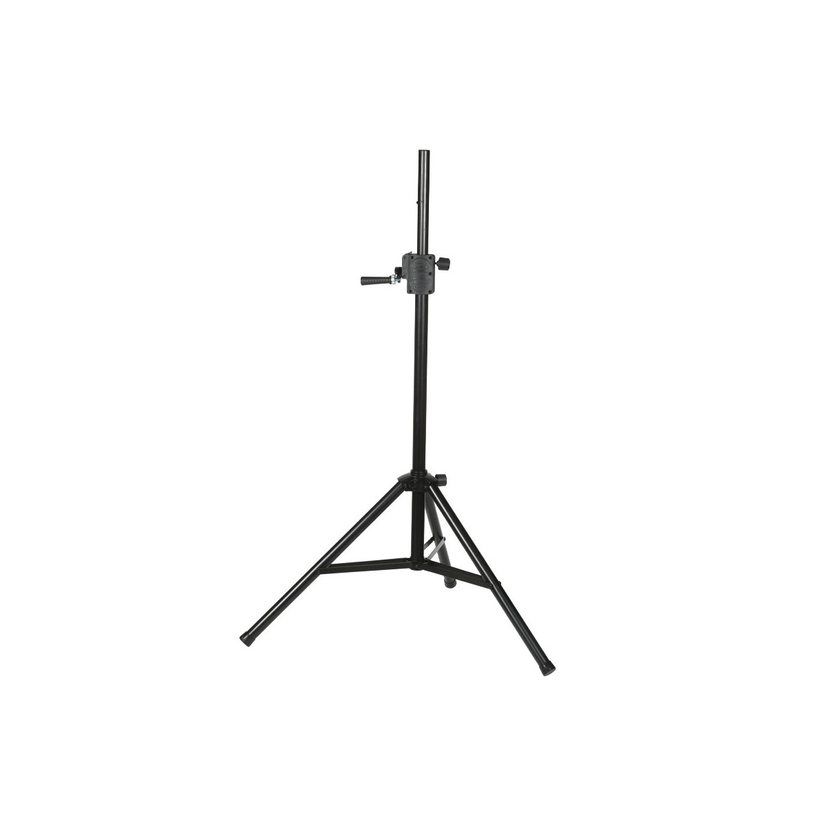 Επιδαπέδια βάση τύπου τρίποδο για ηχεία, κατασκευασμένη από χάλυβα και αλουμίνιο με χειροκίνητο μηχανισμό ανύψωσης και ύψος που φτάνει τα 2.05 μέτρα και με μέγιστο βάρος φόρτωσης τα 70 κιλά.