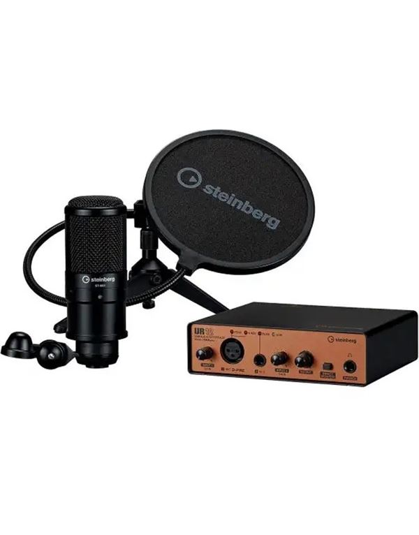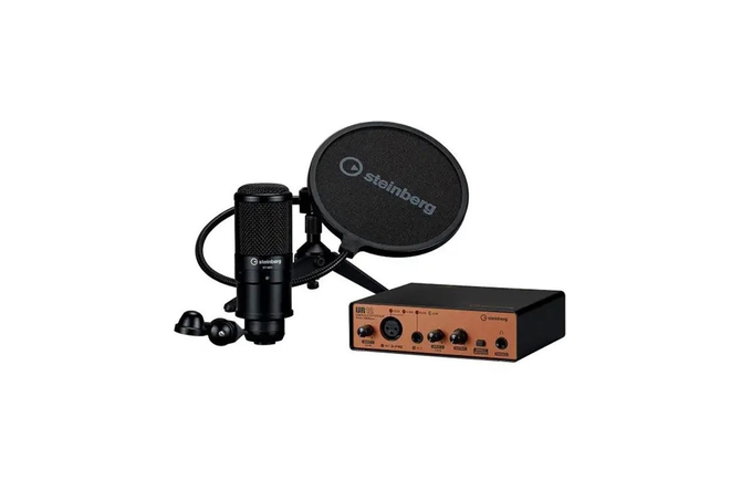 Το UR12 Podcast Starter Pack περιλαμβάνει τη φορητή USB κάρτα ήχου , UR12 σε εντυπωσιακό μαύρο και χάλκινο φινίρισμα, ένα πυκνωτικό μικρόφωνο ST-M01 με αξεσουάρ μια επιτραπέζια βάση , pop filter και καλώδιο , καθώς και τις πιο πρόσφατες εκδόσεις του WaveLab Cast, Cubase AI και λογισμικό Cubasis LE.