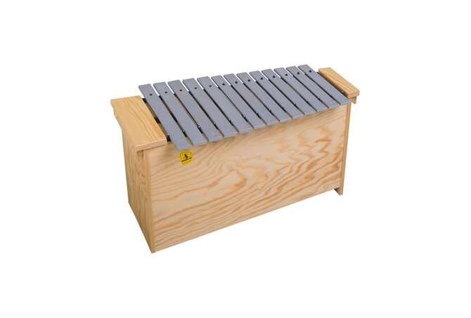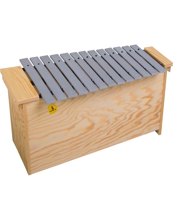 BM 1600 Μεταλλόφωνο . 16 μπάρες ( 6 μπάρες 36 x 10 mm ,10 μπάρες 32 χ 8 mm ) από αλουμίνιο . Τονικό διάστημα c - a1 , συμπεριλαμβανομένων f# και b . Κούρδισμα αρμονικών overtones , ευλύγιστα pin . Κατασκευασμένο από ξύλο έλατου με πολλαπλούς θαλάμους για πλούσιο ηχητικό αποτέλεσμα . Compact σχήμα για εύκολη μεταφορά και αποθήκευση , με χερούλια που επίσης είναι χρήσιμα στη μετακίνηση . Υφασμάτινη επένδυση στα σημεία που ακουμπάνε οι μπάρες για προστασία . Συμπεριλαμβάνονται δύο μαλλέτες S 33 .