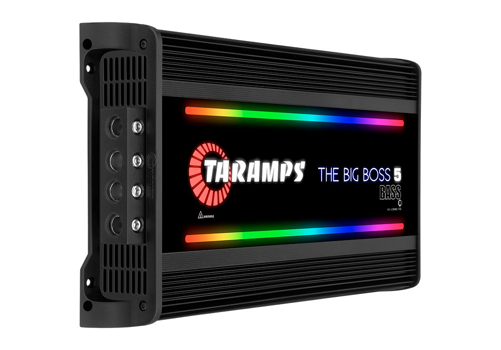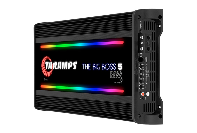 Description THE BIG BOSS 5 BASS is much more than an amplifier; it brings together the best technology available in terms of audio and design. With 108 RGB LED effects, it elevates your sound to an incomparable level and transforms your car into an audiovisual spectacle. The high technology in its construction and automatic multi-impedance system (0.5 to 2 Ohms) makes it an extremely versatile powerhouse. Furthermore, it is a robust and resistant product, designed for exceptional performance when used with subwoofers. Has a wide range of colors and light patterns that sync perfectly to the beat of your music. The Big Boss 5 Bass is an ideal choice for those looking for power, flexibility and style in their sound system. Technical information Number of Channels 01 Maximum power Nominal Power @14.4VDC 0,5 Ohm: 5000W RMS 1 Ohm: 5000W RMS 2 Ohms: 5000W RMS 4 Ohms: 2700W RMS Input Sensitivity 4V ~ 0.2V Signal to Noise Ratio >90dB Frequency Response 8Hz ~ 200Hz (-3dB) Crossover high pass (HPF) 8Hz ~ 30Hz (-12dB/8ª) Variable Crossover low pass (LPF) 60Hz ~ 200Hz (-12dB/8ª) Variable bass boost Freq.: 35Hz ~ 55Hz Boost: 0 ~ +10dB Efficiency 76% @ 0.5 Ohm | 80% @ 1 Ohm | 84% @ 2 Ohms Input Impedance 10K Ohms Output Impedance 0.5 ~ 2 Ohms protection system Output short-circuit, Low/High supply voltage and Thermal protection Minimum Supply Voltage 9VDC Maximum Supply Voltage 17VDC Consumption at rest 2.60A Maximum music consumption @14.4VDC 230A @ 0.5 Ohm | 215.5A @ 1 Ohm | 210A @ 2 Ohms Maximum consumption in sinusoidal signal 461A @ 0.5 Ohm | 431A @ 1 Ohm | 420A @ 2 Ohms Dimensions (WxHxD) 9.37″ x 2.80″ x 16.81″ (238 x 71 x 427 mm) Weight 12,76 lb (5,80 Kg) EAN 7908706600827