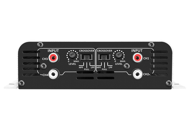 Operation class(PT) Classe DNumber of Channels(PT) 04Maximum power(PT) @ 12,6 VDC - 2 OHMS: 440W RMS (4 x 110W RMS) @ 12,6 VDC - 4 OHMS: 276W RMS (4 x 69W RMS)Input Sensitivity(PT) 250mVSignal to Noise Ratio(PT) >89dBFrequency response(PT) 8Hz ~ 26KHz(-3dB)Crossover high pass (HPF)(PT) 90Hz(-12dB/8ª) FixoCrossover low pass (LPF)(PT) 90Hz (-12dB/8ª) FixoInput Impedance(PT) 18K OHMSProtection system(PT) Curto na SaídaMin. Supply Voltage(PT) 8VDCMaximum Power Supply Voltage(PT) 16VDCConsumption at rest(PT) 0,8AMaximum music consumption(PT) @12,6VDC 23,5AMaximum consumption in sinusoidal signal(PT) 47ADimensions (H x W x D) mm(PT) 160 x 44 x 145mmWeight(PT) 0,6000Kg