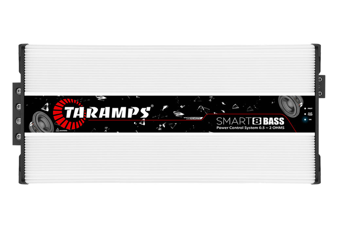 Description Smart 8 BASS is yet another Taramps innovation for automotive sound systems. The exclusive Power Control System technology, now applicable to subwoofers, ensures even more safety and quality in the low frequencies by monitoring the amplifier during operation. It is a multi-impedance single-channel amplifier that delivers 8000 Watts RMS of power at any impedance between 0.5 and 2 Ohms. Its double robust connector allows the use of power cables with a larger gauge for better performance. Finally, it is compatible with the LED Clip Monitor M1 and the new Monitor Level Remote. Have an excellent sound experience with more impactful bass! Technical information Number of Channels 01 Maximum power Nominal Power @14.4VDC 0.5 Ohm: 8000W RMS 1 Ohm: 8000W RMS 2 Ohms: 8000W RMS 4 Ohms: 4800W RMS Input Sensitivity 4V ~ 0.2V Signal to Noise Ratio >90dB Frequency Response 8Hz ~ 200Hz (-3dB) Crossover high pass (HPF) 8Hz ~ 30Hz (-12dB/8ª) Variable Crossover low pass (LPF) 60Hz ~ 200Hz (-12dB/8ª) Variable bass boost Freq.: 35Hz ~ 55Hz Boost: 0 ~ +10dB Efficiency 78% @ 0.5 Ohm | 82% @ 1 Ohm | 86% @ 2 Ohms Input Impedance 10K Ohms Output Impedance 0.5 ~ 2 Ohms protection system Output short-circuit, low/high supply voltage and Thermal protection Minimum Supply Voltage 9VDC Maximum Supply Voltage 17VDC Consumption at rest 5.0A Maximum music consumption 356A @ 0.5 Ohm | 339A @ 1 Ohm | 323A @ 2 Ohms Maximum consumption in sinusoidal signal 712A @ 0.5 Ohm | 678A @ 1 Ohm | 646A @ 2 Ohms Dimensions (WxHxD) 9.37″ x 2.80″ x 20.16″ (238 x 71 x 512mm) Weight 16.39lb (7,45Kg) EAN 7908706600421