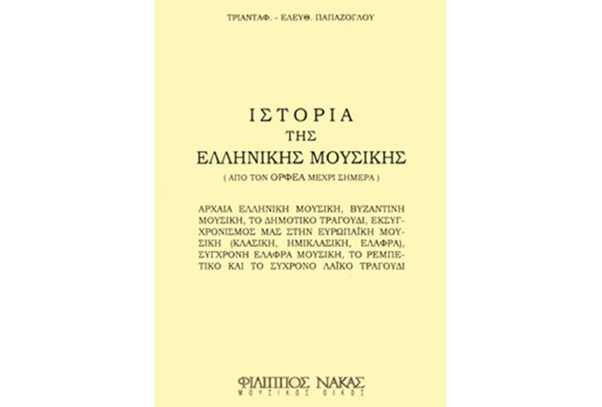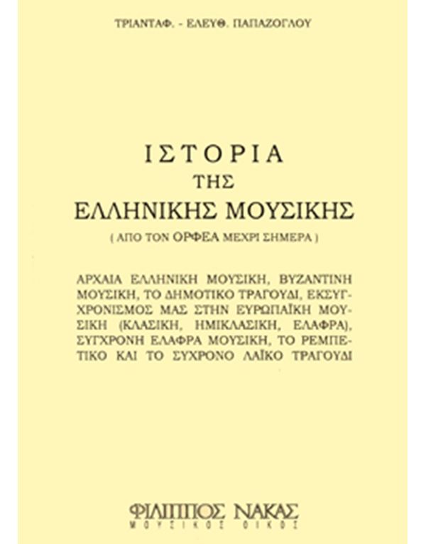 Σε αυτή την ιστορία της μουσικής γίνεται αναφορά στην αρχαία ελληνική μουσική, βυζαντινή μουσική, το δημοτικό τραγούδι, τον εκσυγχρονισμό μας στην ευρωπαϊκή μουσική (κλασική, ημικλασική, ελαφρά) τη σύγχρονη ελαφρά μουσική, το ρεμπέτικο και το σύγχρονο λαϊκό τραγούδι.