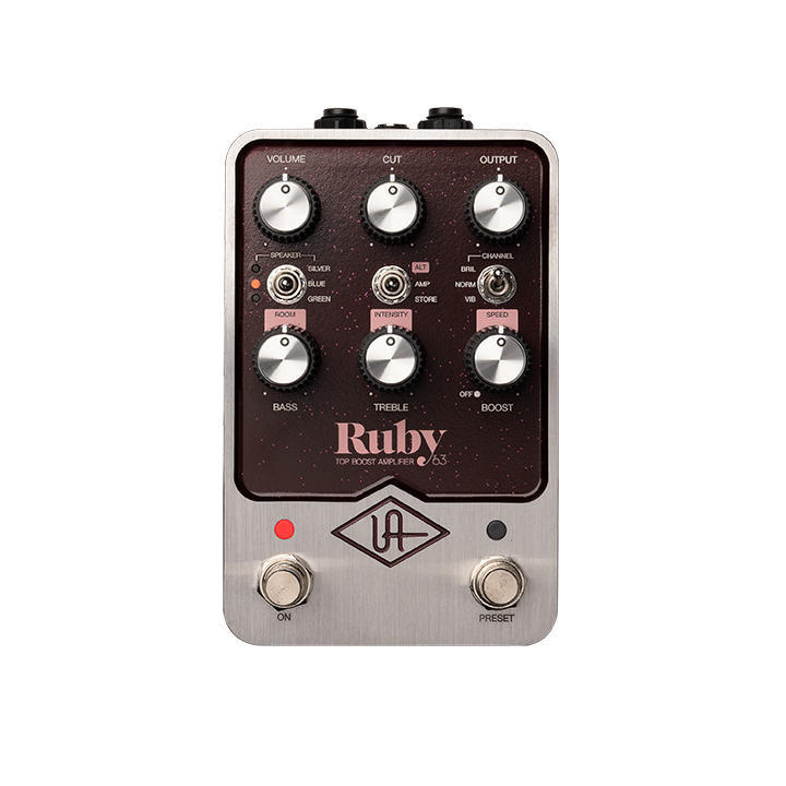Διπλή εξομοίωση των πιο πολυπόθητων AC30 της VoxΠεριλαμβάνει μοντέλα Non-Top Boost '61 και Top Boost '63 με κυκλώματα vibrato/trem.3 επιλογές κλασσικών μεγαφώνων:> SILVER — Rare 15W Celestion Silver Bulldog> BLUE — Original Celestion Blue Bulldog> GREEN — Modern Celestion G12H3 built-in boost + amp channel options:> Brilliant Channel + EP-III Preamp Boost> Normal Channel + Rangemaster Treble Booster> Vibrato Channel + Transparent clean boost3 επιπλέον καμπίνες με το registration:> 1x12 AC15 cab με μεγάφωνο Blue Bulldog.> 2x12 Matchless cab με μεγάφωνα Celestion G12H.> 2x12 Boutique cab με μεγάφωνα Celestion Gold.Ο Vox AC30* έχει δημιουργήσει μερικούς από τους καλύτερους ζωντανούς και ηχογραφημένους ήχους κιθάρας όλων των εποχών. Το πεντάλ Ruby ‘63 Top Boost της UA αποτυπώνει την πλήρη ουσία αυτού του κλασικού βρετανικού συνδυασμού 30 watt 2x12, μετο χαρακτηριστικό δάγκωμα που αποτελεί την επιτομή της χρυσής εποχής του τόνου της ροκ κιθάρας.- Προσομοιώσεις πλήρους διαδρομής ενισχυτή των μοντέλων vintage '61 non-Top Boost και '64 Top Boost, συμπεριλαμβανομένων καναλιών Normal, Brilliant και Vibrato για αυθεντικούς τόνους Vox.- Περιλαμβάνει καμπίνα ηχείων παγκόσμιας κλάσης, μικρόφωνο και τεχνολογία Dynamic Room Modeling που προέρχεται από το βραβευμένο OX Amp Top Box.- Διαθέτει το διάσημο treble booster, προενισχυτή και λειτουργίες ηχείων, καθώς και επιπλέον καμπίνες ηχείων με δυνατότητα λήψης κατά την εγγραφή του προϊόντος.Αξιοσημείωτοι μουσικοί: Brian May, Rory Gallagher, The Edge, Jonny Greenwood (Radiohead).