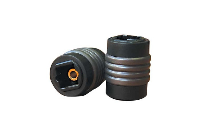 Αντάπτορας που συνδέει μια θηλυκή θύρα Toslink με μια θηλυκή θύρα Toslink.