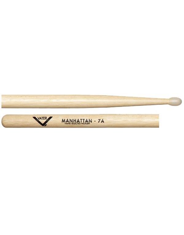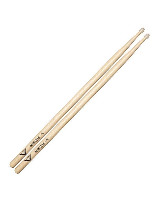 Mπαγκέτες VATER Manhattan 7A Nylon. Υλικό κατασκευής: Αμερικάνικο ξύλο hickory Μέγεθος: 7A Νάιλον άκρη Μοντέλο Manhattan Μήκος: 16" | 40.64cm Διάμετρος: 0.540" | 1.37cm Sku: VH7AN
