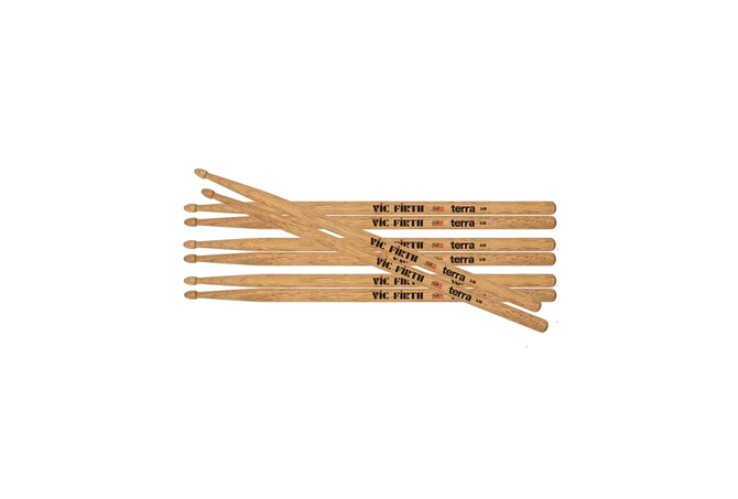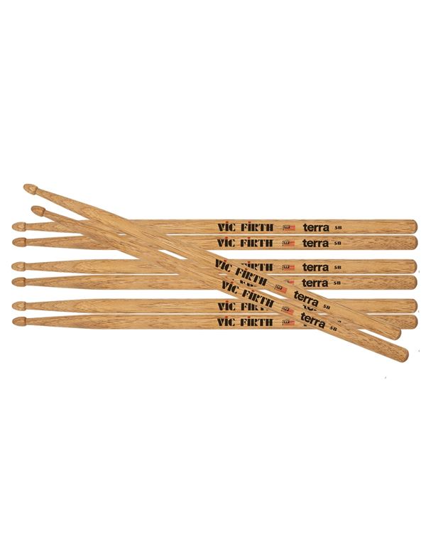 Oι μπαγκέτες της σειράς Vic Firth Terra™ χαρακτηρίζονται από τη φυσική ομορφιά που χαρίζει η φύση σε κάθε μπαγκέτα που κατασκευάζει η Vic Firth. Χρησιμοποιώντας μια ιδιόκτητη διαδικασία χρώσης, οι μοναδικοί και όμορφοι κόκκοι εκτίθενται έτσι ώστε να μην είναι όμοια δύο ζεύγη. Κατασκευασμένες από υψηλής ποιότητας - premium ξύλο USA Hickory στο Newport, η σειρά Terra™ αποτίει φόρο τιμής στο υλικό στο οποίο βασίζονται οι ντράμερ σε όλο τον κόσμο για να κάνουν μαγικά πίσω από το κιτ τους.