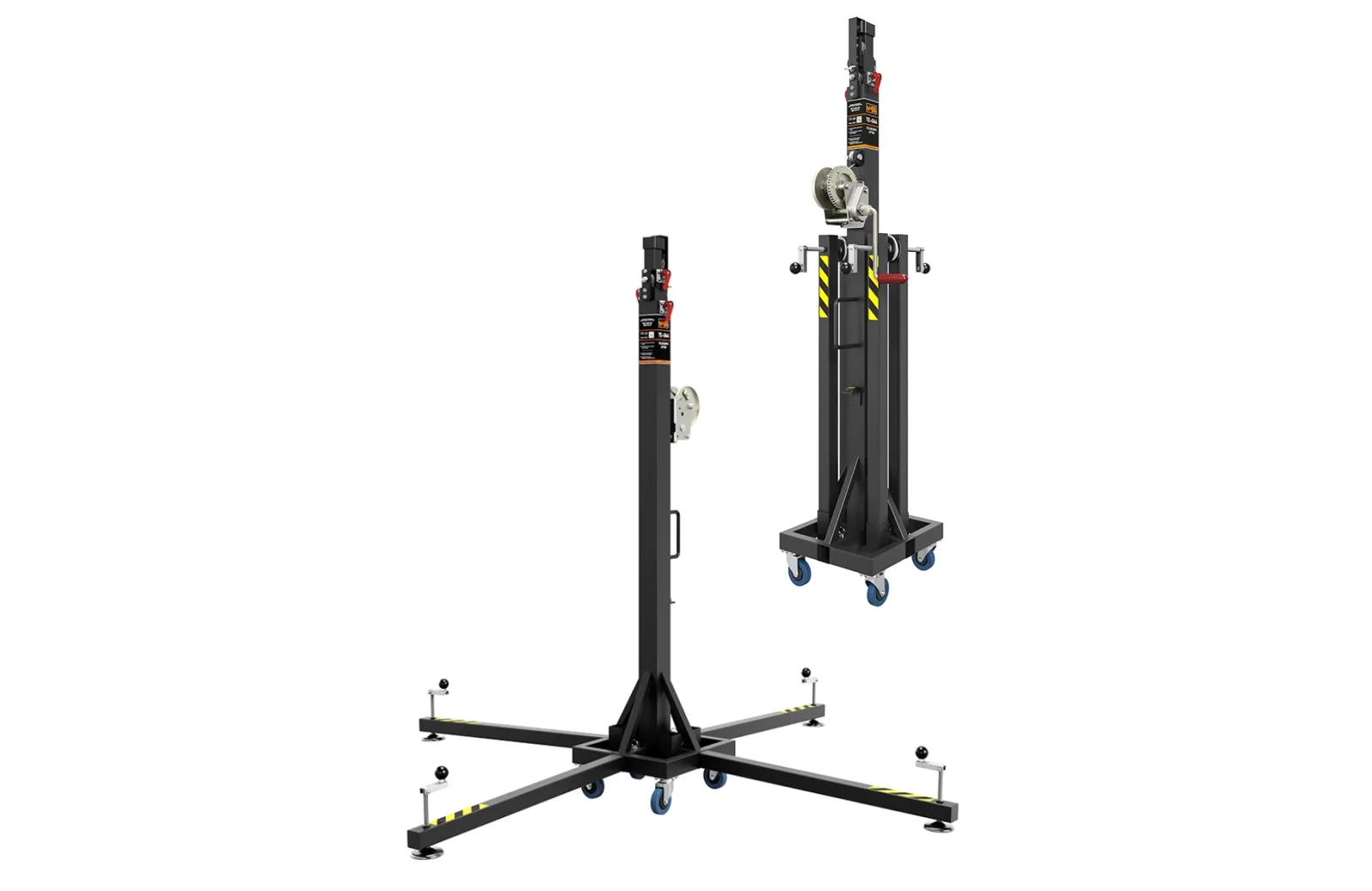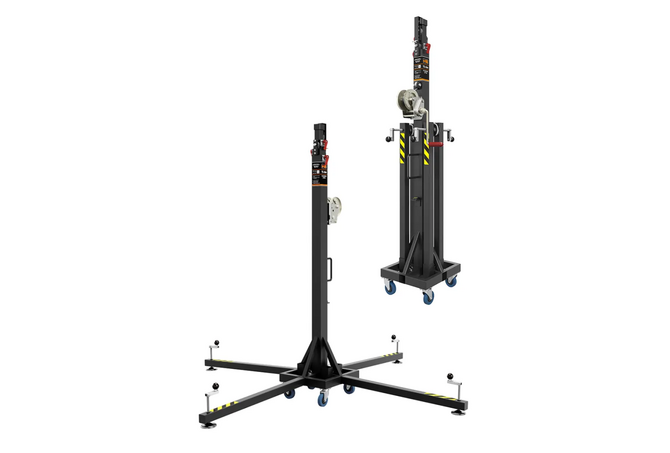 VMB TE-064B, τηλεσκοπικός ανυψωτήρας με δυνατότητα ανύψωσης έως 150kg σε μέγιστο ύψος 5.35m. Αποτελεί αξιόπιστη λύση για εφαρμογές φωτισμού, ήχου και rigging, όπου χρειάζεται γρήγορο στήσιμο, στιβαρή κατασκευή και σοβαρή ασφάλεια.
