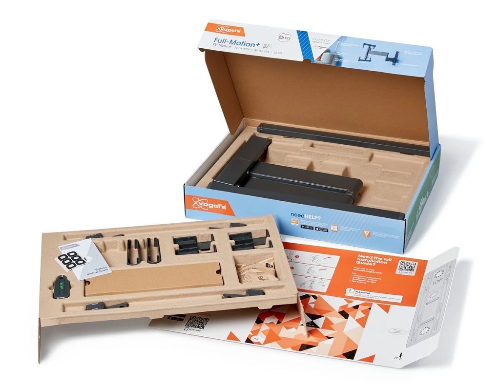 Δεν χρειάζεται να είστε επαγγελματίας για να εγκαταστήσετε το επιτοίχιο στήριγμα τηλεόρασης COMFORT Full-Motion+. Περιλαμβάνονται ένα πρότυπο διάτρησης, βίδες, βύσματα Fischer® DuoPower, δεματικά καλωδίων και ένα αλφάδι. Η πρώτη τρύπα διάτρησης είναι εύκολο να σηματοδοτηθεί χρησιμοποιώντας τη δωρεάν εφαρμογή DrillRight™ AR App.