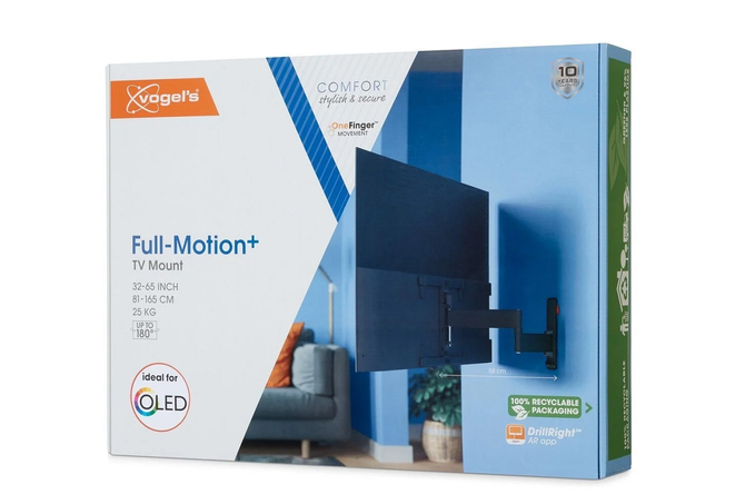Ψάχνετε για μια ασφαλή, πλήρως κινητή επιτοίχια βάση τηλεόρασης για την εύθραυστη τηλεόραση OLED; Μια βάση τοίχου που να ταιριάζει απόλυτα με το μινιμαλιστικό σχεδιασμό της τηλεόρασής σας; Γνωρίστε την κομψή επιτοίχια βάση στήριξης τηλεόρασης COMFORT Full-Motion+. Η βάση τοίχου είναι κατάλληλη για τηλεοράσεις OLED από 32 έως 65 ίντσες και βάρος έως 25 κιλά. Μπορεί να περιστρέφεται κατά 180°. Αυτό σας επιτρέπει να απολαμβάνετε αβίαστα την όμορφη OLED τηλεόρασή σας από οποιοδήποτε σημείο του δωματίου.