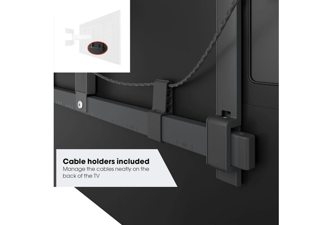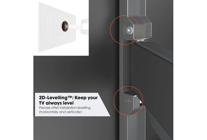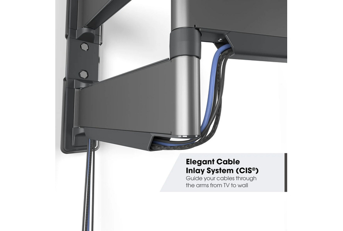 Οι επιτοίχιες βάσεις τηλεόρασης ELITE Full-Motion+ υπερέχουν στην τελειότητα. Η επιτοίχια βάση τηλεόρασης διαθέτει 2D Leveling™, διευκολύνοντας την απόλυτα ευθεία τοποθέτηση της τηλεόρασής σας, τόσο οριζόντια όσο και κάθετα, ακόμη και μετά την εγκατάσταση. Τα καλώδια περνούν - εκτός οπτικού πεδίου - μέσα από τους βραχίονες στήριξης χάρη στο μοναδικό σύστημα Cable Inlay System (CIS®). Μπορείτε να κρύψετε τα καλώδια στο πίσω μέρος της τηλεόρασής σας με τάξη χρησιμοποιώντας τις ειδικές υποδοχές καλωδίων. Όλες οι τεχνικές λεπτομέρειες της επιτοίχιας βάσης τηλεόρασης είναι όμορφα κρυμμένες πίσω από κομψές πλάκες κάλυψης.