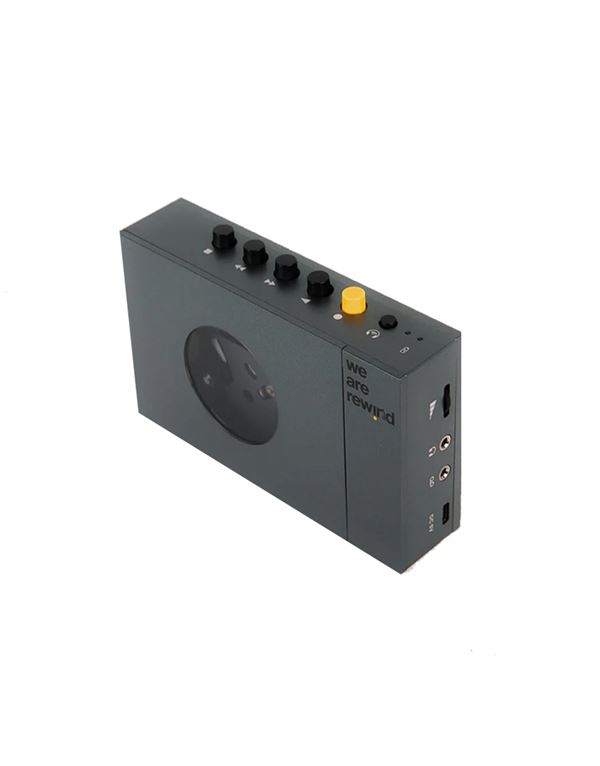 Όπως τα παλιά κασετόφωνα, οι συσκευές αναπαραγωγής της We are rewind διαθέτουν κουμπιά γρήγορης κίνησης προς τα εμπρός/πίσω, μια έξοδο ακουστικών, έναν έλεγχο έντασης και μια είσοδο ήχου, ώστε να μπορείτε να δημιουργήσετε τα δικά σας mixtapes.