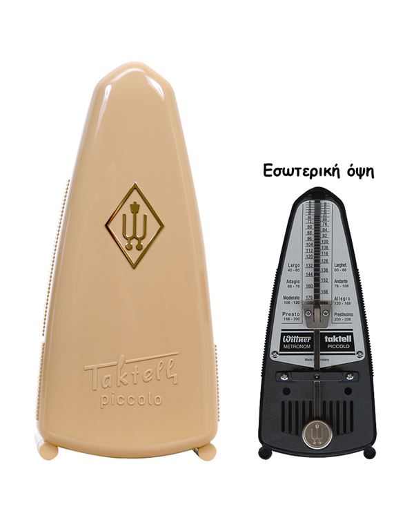 Μετρονόμος πλαστικός, κουρδιστός σε ανοιχτό καφέ χρώμα, χωρίς κουδούνι. Διαστάσεις: 70 x 45 x 150 mm