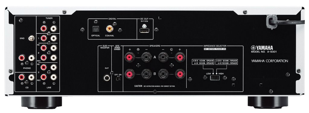 Ο A-S301 είναι εξοπλισμένος με οπτικούς και ομοαξονικούς ακροδέκτες. Ο οπτικός είναι για τη λήψη ήχου από τηλεόραση, και ο ομοαξονικός για τη λήψη ήχου από συσκευή αναπαραγωγής Blu-Ray. O ήχος παραμένει στο ψηφιακό τομέα, δίνοντας σας καθαρό, ανόθευτο δυναμικό ήχο για όλες τις πηγές ψυχαγωγίας σας, από αθλητικά και άλλα προγράμματα μέχρι ταινίες και συναυλίες.