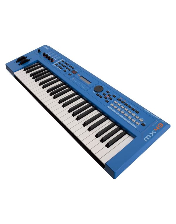 Για τους πληκτράδες που χρειάζονται νέους ήχους, συνδεσιμότητα με τον υπολογιστή και full-sized πλήκτρα σε ένα συμπαγές πακέτο υψηλής φορητότητας. Το MX49II Blue βασίζεται στην μηχανή παραγωγής ήχων AWM2 και έχει μέγιστη πολυφωνία 128 νότες ενώ είναι 16 parts Multi Timbral. Το MX-49II Blue ενσωματώνει 1106 ήχους, 61 Drum Kits, 128 Normal Voices GM, 1 Drum Kit και 128 Normal Voices User + 8 Drum Kits, Reverb x 9 ( 42 Presets ), Chorus x 17 ( 88 Presets ), Insertion effects x 48 types (267 presets ) x 4, Master EQ (5 bands ), Sequencer 5 - 300 bpm, 27 demo songs, 208 patterns, 999 τύποι Arpeggio, Έξοδοι / Είσοδοι OUTPUT [L / MONO] / [R] (standard phone jack), [PHONE] (standard stereo phone jack), [FOOT CONTROLLER], [SUSTAIN], MIDI [IN] / [OUT], USB [TO HOST] / [TO DEVICE], [AUX IN], DC IN, Pitch Bend Wheel x 1, Modulation Wheel x 1, Assignable Knob x 4, Οθόνη 3 digit LED x 2 line character LCD ( Backlit ), Διαστάσεις : 83 x 9.1 x 29.8 εκ. Βάρος : 3.8 kg.