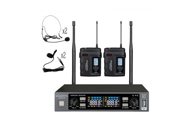 Σετ Διπλός Δέκτης, 2x Μικρόφωνα Πέτου, 2x Κεφαλής & 2x Bodypack ZZiPP TXZZ420